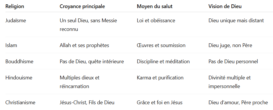 À première vue, elles semblent partager un message commun de paix, d’amour ou de sagesse. Mais lorsqu’on regarde de plus près à qui elles s’adressent et quelle est leur vision du salut, les différences deviennent fondamentales.